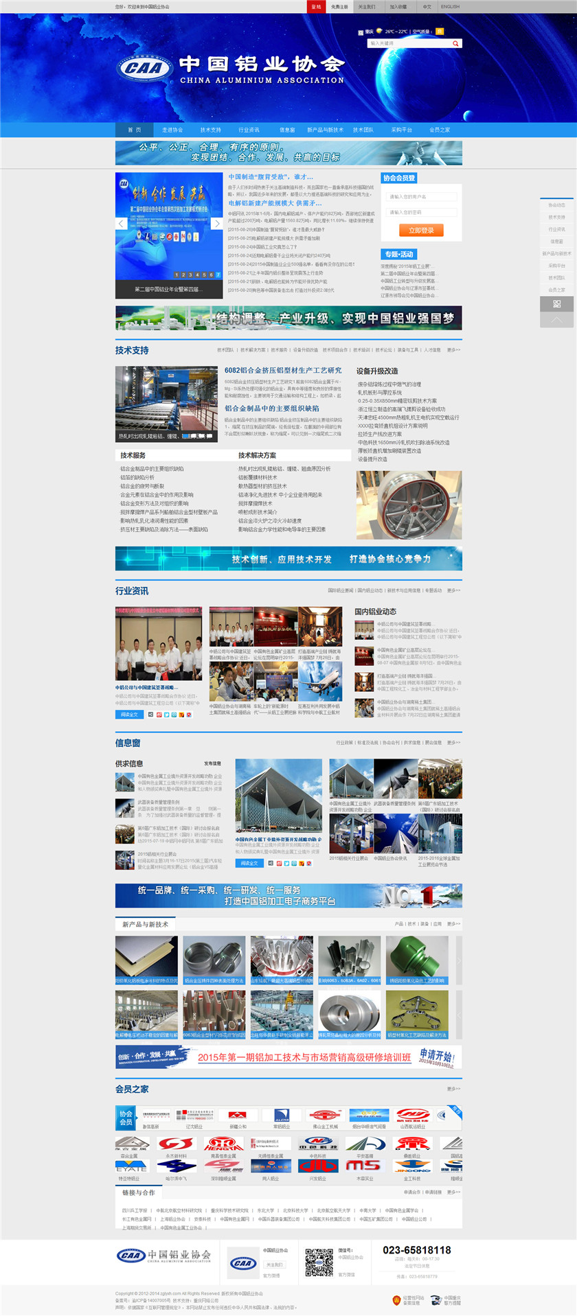 Project Description 中国铝业协会是由中国国内主要从事铝合金铸造、板、带、箔、管、棒、型材、锻件等企业组成的行业协会组织,协会由国内具有一定规模和影响力的企业发起,已有三百多家会员企业,目前还有很多企业踊跃希望加入,协会现有会员企业年销售额1000多亿元人民币,协会会员企业分布在国内华东、华南、西南、环渤海、东北、胶东半岛等中国经济活跃地区;产品涵盖航空航天、兵器装... Official website address 阿拉善http://www.caa2014.com I want to share